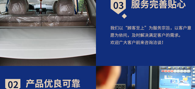 遮物簾以帆布和超纖皮革兩種材質(zhì)為主,拉桿以磨砂鋁合金提升汽車檔次,減小噪聲;端頭卡扣附有隔音絨布,減小異響;無用打孔,在對(duì)應(yīng)預(yù)留孔位上卡扣即可,安裝簡(jiǎn)單,需要時(shí)候拉開,不用時(shí)候合上即可!
